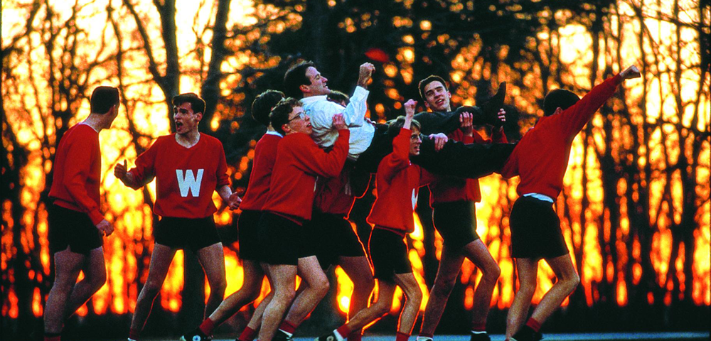 Riguardo sempre con un dolce fremito “L’attimo fuggente”, film di Peter Weir con lo strepitoso Robin Williams nel ruolo del professor Keating, insegnante di letteratura capace di forgiare anima e corpo degli imberbi liberi pensatori suoi allievi. La sceneggiatura originale (premiata con l’Oscar del 1990, se ben ricordo) ha la felice intuizione di dissacrare l’opera critica – inventata ma, in realtà, ispirata a un saggio esistente – del fu parruccone Jonathan Evans Prichard. Nell’introduzione del testo di letteratura inglese degli studenti “Comprendere la poesia”, la creazione letteraria (e l’arte in generale) viene ridotta al mero prodotto di due fattori numerici prestabiliti, attribuiti arbitrariamente a forma e importanza delle singole opere, alla stregua di una prova qualità matematizzante da decretare allo stesso modo che per una merce destinata agli scaffali di un supermercato. “Escrementi,” si lascia scappare di bocca il colto e romantico professore, volontariamente, senza far nulla per impedirsi il commento sul cinico saggio del Prichard. Da quel momento in poi diventerà il faro illuminante di due intere generazioni di ragazzi: quella soggiogata da genitori bigotti e inquadrati degli anni ‘50 americani, nella classe del professor Keating, e quella davanti allo schermo che assisteva al film negli anni 90.