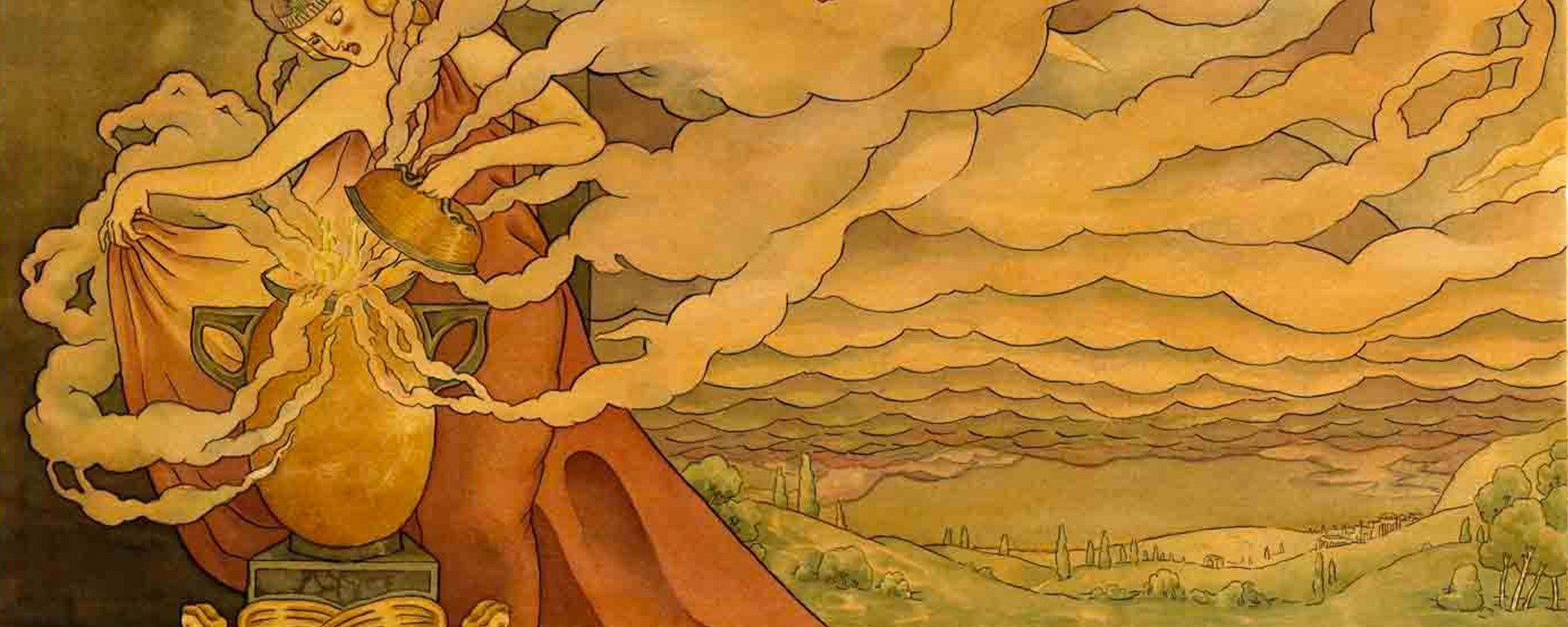 Delicatamente Premuda ne fa cenno, senza togliere godibilità al mito di Pandora, il cui nome significa “tutti i doni”, che il mondo greco riconosce dotata da Zeus e dagli altri dèi chiamati a collaborare per forgiarla e agghindarla, di bellezza, virtù, abilità, grazia, astuzia e ingegno. E Zeus, irascibile e sadico, manda sulla terra per gli uomini “un male di cui gioiranno, qualcosa su cui investiranno il loro amore e che invece si rivelerà essere la loro disgrazia: una donna.” Tergiversa Pandora, incerta se aprire il vaso sigillato con un tappo di cera con cui l’ha inviata da Epimeteo, fratello ingenuo di Prometeo, cui l’ha destinata in sposa. Alla fine Pandora, si sa, cede alla curiosità e libera tutti i mali che da allora affliggono l’umanità: vecchiaia, gelosia, malattia, dolore, pazzia e vizio. Sul fondo del vaso rimane solo la speranza, che non fa in tempo a prendere il volo. Spes, ultima dea.