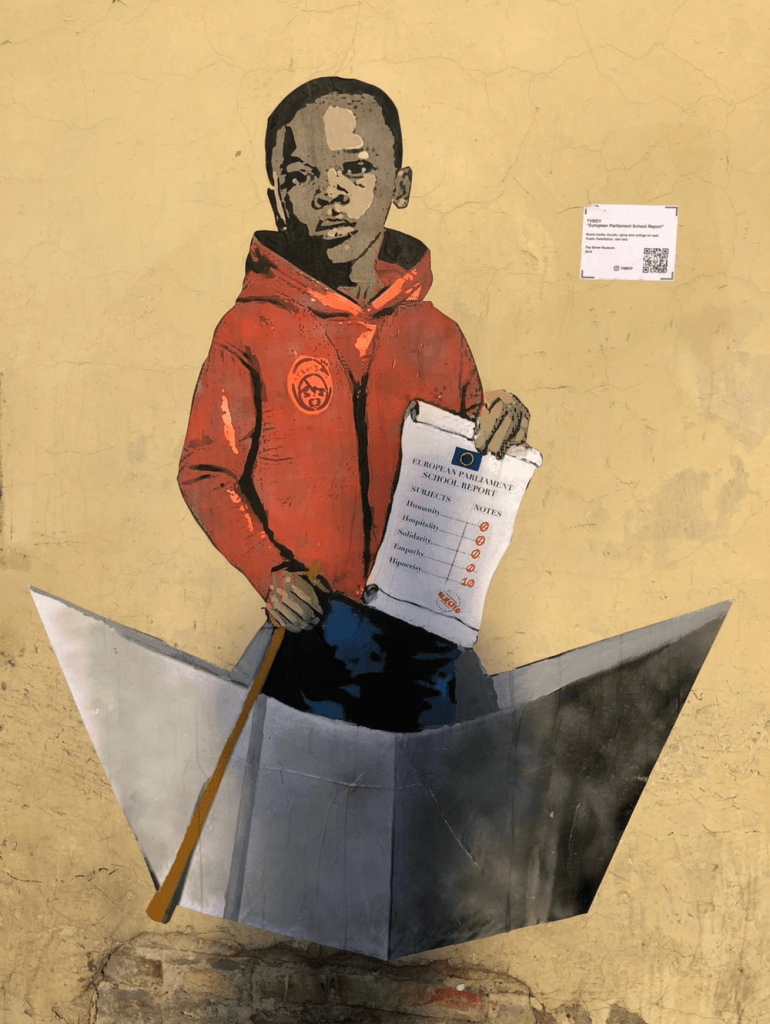 Si giustificano così, gli “Angeli del bello” di Firenze: gente che in Italia, senza farsi mezza domanda prima, ricoprirebbe perfino le opere di Banksy. Hanno ricoperto ed eliminato stavolta il murales del bimbo che dà i voti all’UE, dopo quello di Renzi-zombie, dello street artist TvBoy. Si ripristinassero il cervello, ‘sti benpensanti di serie z, senza arte né parte; pavidi, non richiesti, incapaci di distinguere un vandalismo da un’opera eseguita su uno spazio messo a disposizione dai proprietari (venti metri più in là, hanno lasciato in bella mostra le scritte degli ultras di calcio; don’t ask…). Non ricevono fondi, dicono, ma al soldo – anche solo moraleggiante – di qualcuno devono pur essere: è evidente già dal pomposo e propagandistico nome che si attribuiscono (avete presente le ronde? presenti gli ‘angels’ di qualsivoglia risma?), e ‘bello’ non sanno neanche che cosa sia. Il mandante comincia per N e finisce per ardella, la quintessenza di un certo tipo di cosiddetto ‘belpensiero’. W l’Italia, cantava esattamente quarant’anni fa, ormai, De Gregori.
