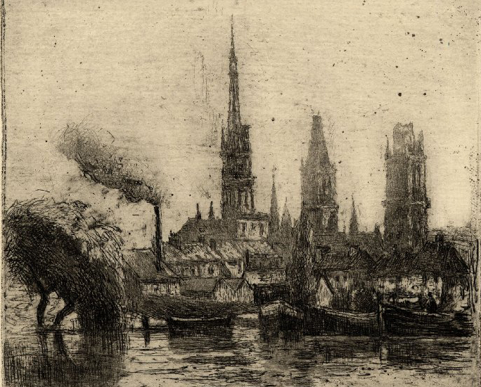 L’istante in cui la luce si ferma su una superficie, su un tessuto, su un edificio. L’attimo da cogliere in una impressione. Accostamenti di colori che si accendono e si completano in pennellate febbrili e veloci, tali da restituire la poetica di un gruppo: gli impressionisti. Ma come si possono conciliare gli effetti atmosferici e luministici con la tecnica incisoria? Come si possono incidere “impressioni” senza il colore? Eppure Renoir, Degas, Pissarro, Manet, Sisley, Signac si sono confrontati a lungo con l’incisione, prediligendo l’acquaforte. Si tratta di una tecnica calcografica indiretta, perché la lastra metallica è incisa dall’acido non dalla punta che invece può muoversi sulla vernice resistente alla morsura in maniera libera. Se il bulino produce segni molto definiti, l’acquaforte solca linee più irregolari, più morbide e meno legate a progressioni di reticoli o segni curvi incrociati. Il segno è arioso, i contorni sono più sfumati. Gli impressionisti sceglieranno…