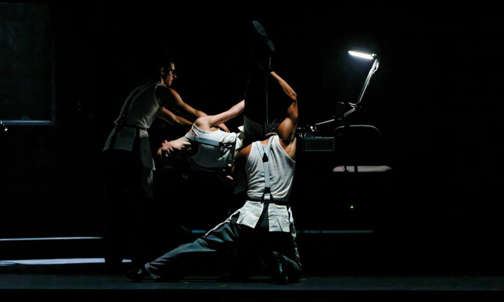 È un lavoro che conquista scena dopo scena, che si svela lentamente, come un sogno analizzato freudianamente. Gli splendidi danzatori dell’Aterballetto sono sacrificati nella poca danza così come la speriamo ogni volta noi spettatori, ma sono enormi nella capacità di vibrare, di raccontare, parlare, cantare e far vedere di cosa sono capaci nelle minute e frammentate sequenze coreografiche.